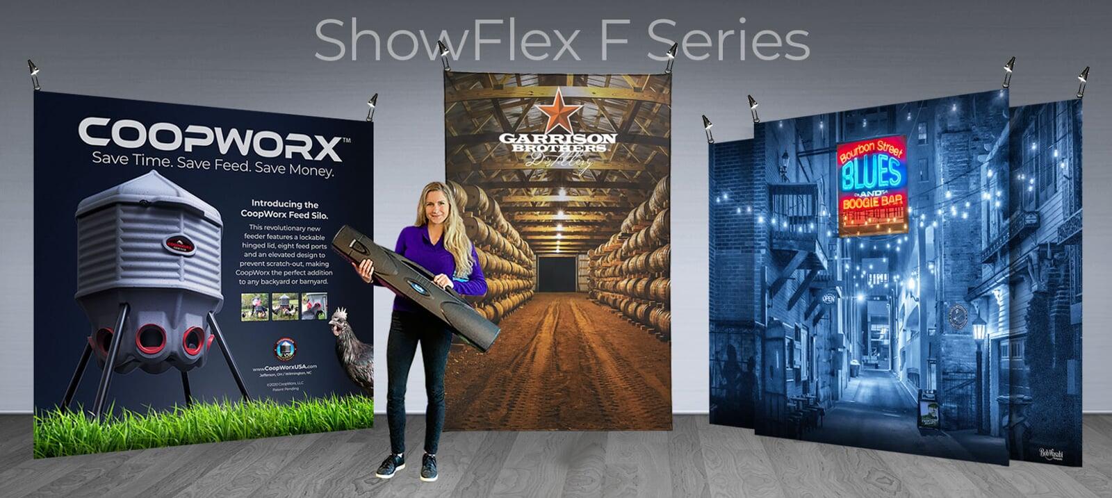 From the F Series that packs in our 5" x 39" bannercase to HexFrame Trio Backwall there is a ShowFlex for every presentation.