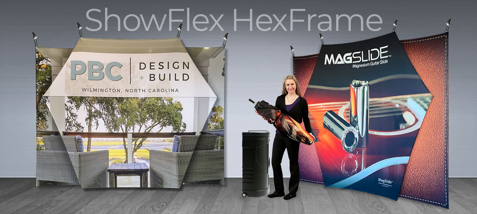 Why ship a bulky pop-up display when you can walk in with a ShowFlex that weights 12 lbs.?