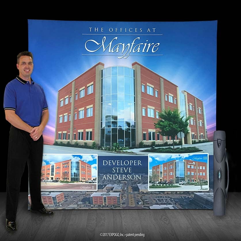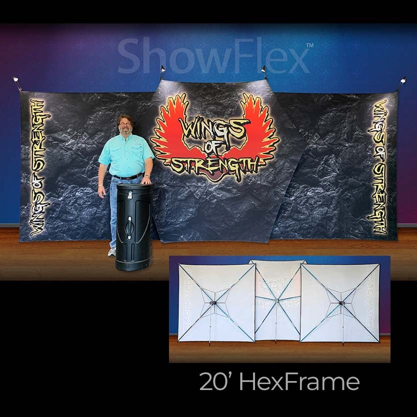 The F2 ShowFlex 92" x 92" backwall travels a bannercase and weighs 12 lbs. when packed.