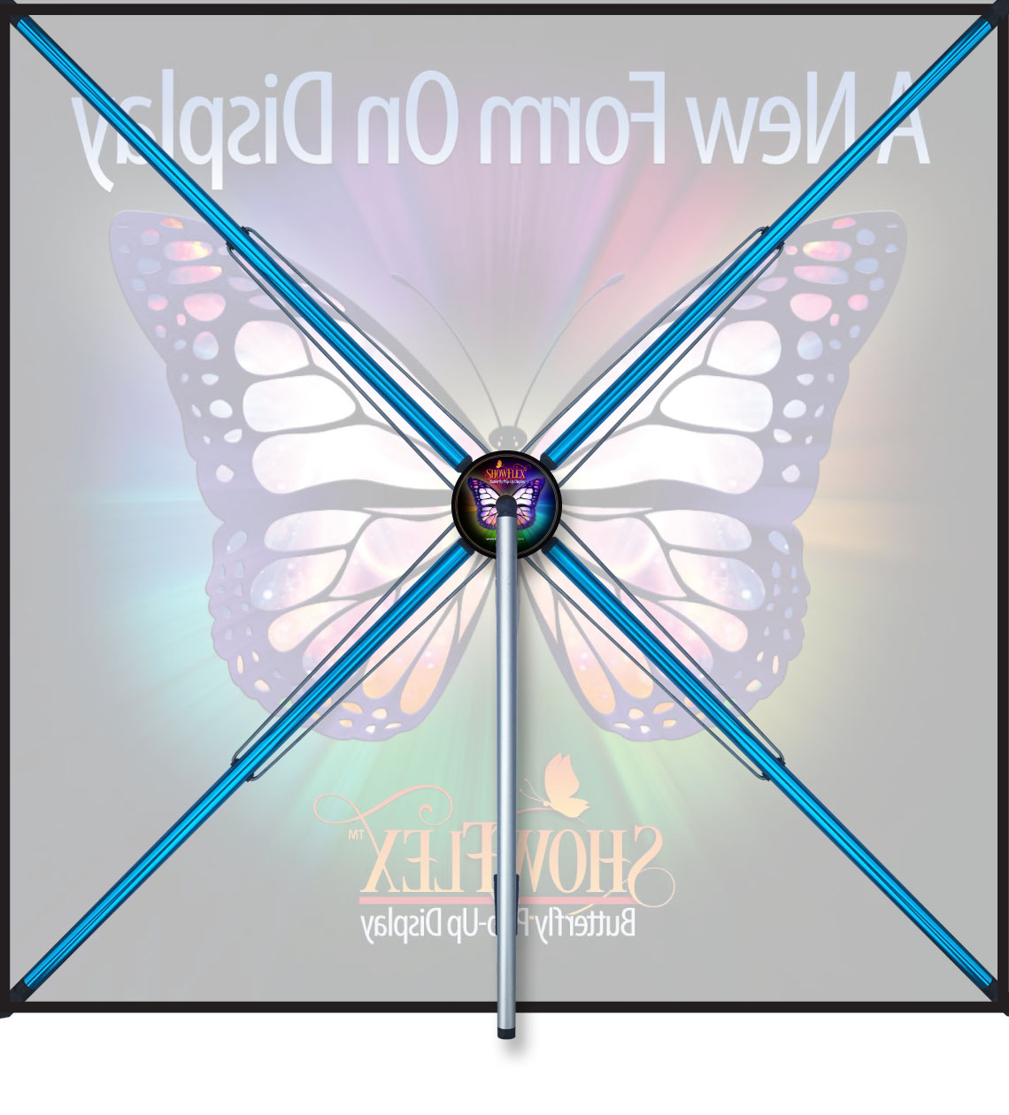 The ShowFlex tabletop opens and closes like an umbrella, sets up in seconds and features vibrant dye-sub graphics that remains attached when closed. Includes nylon travel bag.